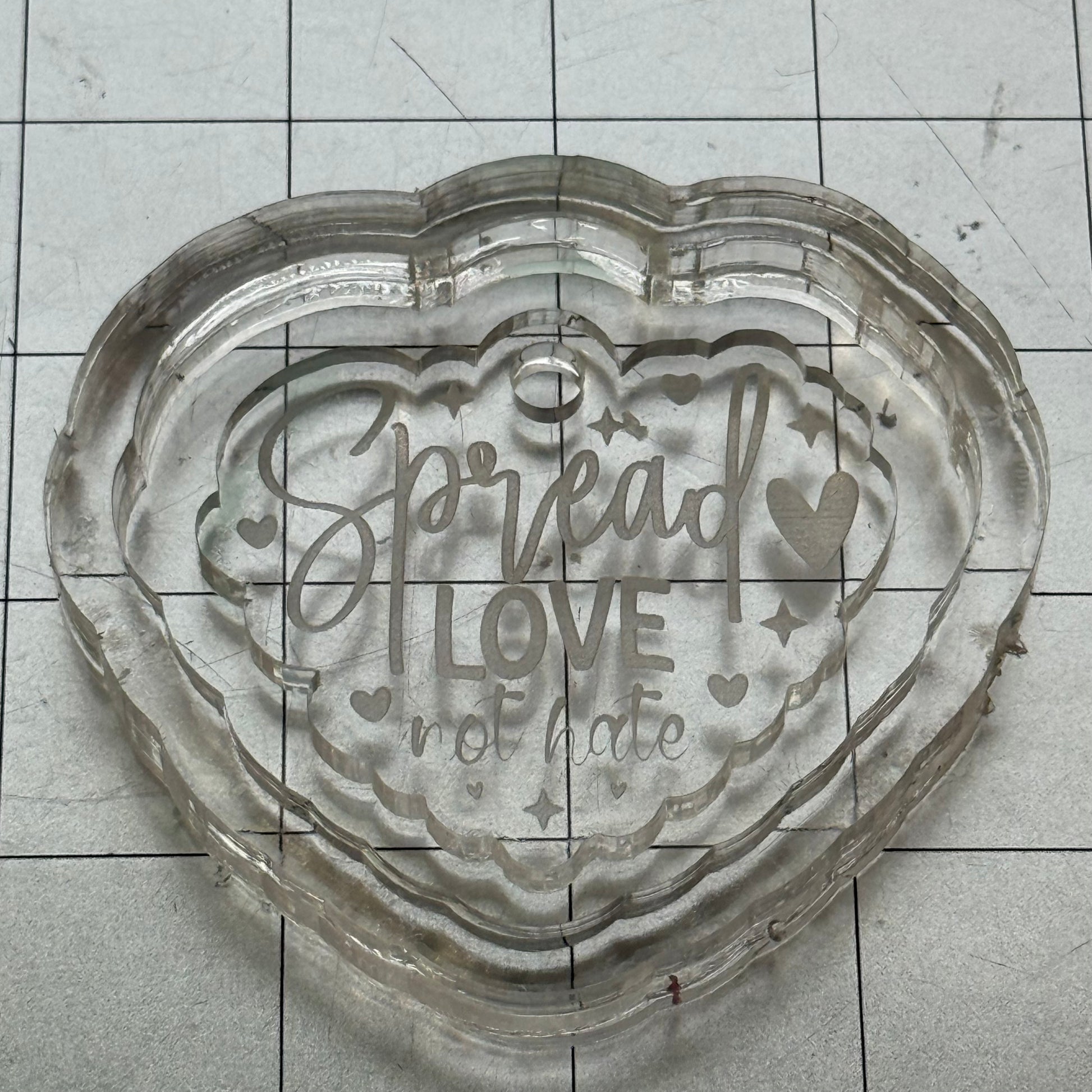 Used Spread Love Not Hate Acrylic Blank for Mold Making with Attached Housing